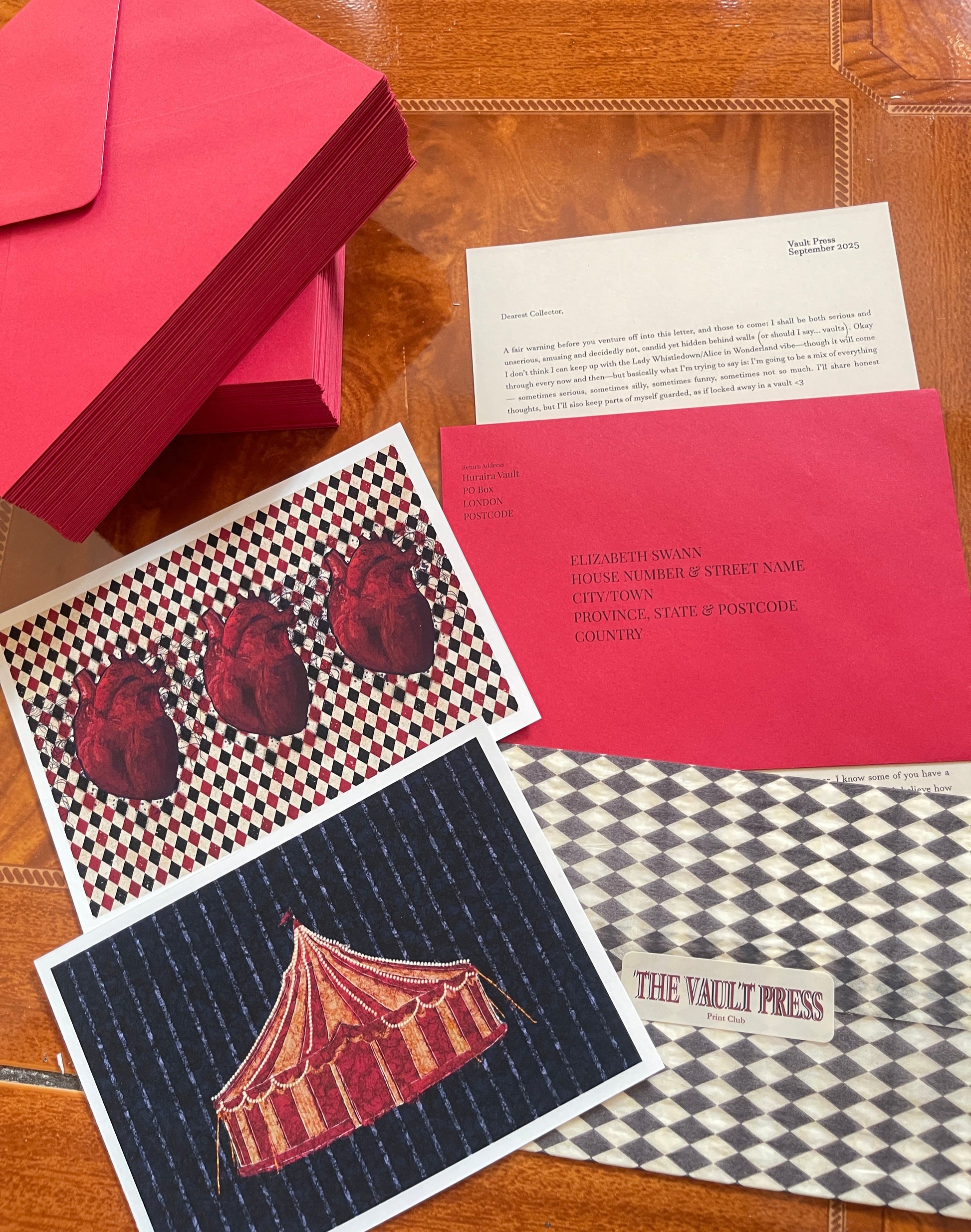 Each print is a discounted version of one of my original pieces, made specially for Vault Paper Club members.